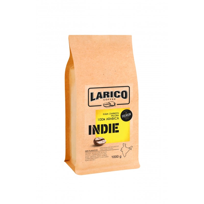 LARICO KAWA ZIARNISTA Indie Plantation 100% ARABICA 1000G - Najwyższej jakości kawa, pochodząca z najlepszych plantacji Indii. Wyśmienity smak oraz pobudzający aromat zawdzięcza tradycyjnemu procesowy palenia metodą ręczną w piecu Bębnowym. Kawa o intensywnym i bogatym aromacie oraz subtelnym i dobrze zharmonizowanym smaku z łagodną kwasowością. Znakomicie nadaje się do wszystkich typów ekspresów oraz tradycyjnego zaparzania.